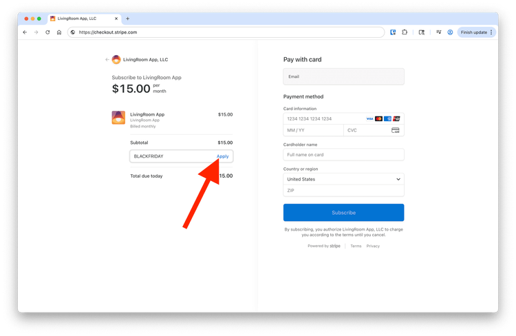 Black Friday discounts for LivingRoom apply to newly created accounts only.
